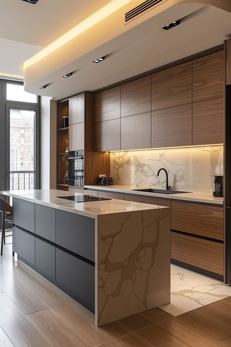 Basically, minimalistic kitchens that use glass-like cabinetry represent transparency and simplicity. They indicate a design philosophy in which beauty consists in openness, order as well as simplified elegance.