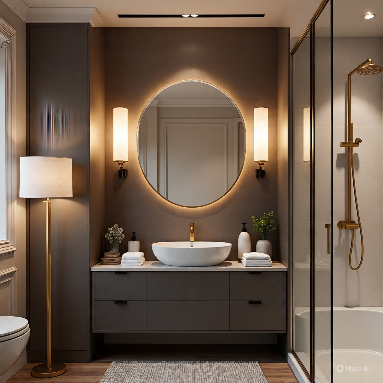Lighting in bathrooms needs to be both functional and relaxing. Task lighting around mirrors ensures clarity for grooming, shaving, or applying makeup. LED sconces on either side of the mirror prevent shadows, while overhead fixtures provide general illumination. For ambiance, dimmable lights or backlit mirrors create a spa-like feel. Recessed lighting in the shower enhances visibility and safety. Warm LED bulbs are preferred over harsh fluorescent lights, offering a more natural glow. Layering different light sources ensures the bathroom is bright enough for daily use but also adaptable for relaxation. Good lighting elevates both style and practicality.