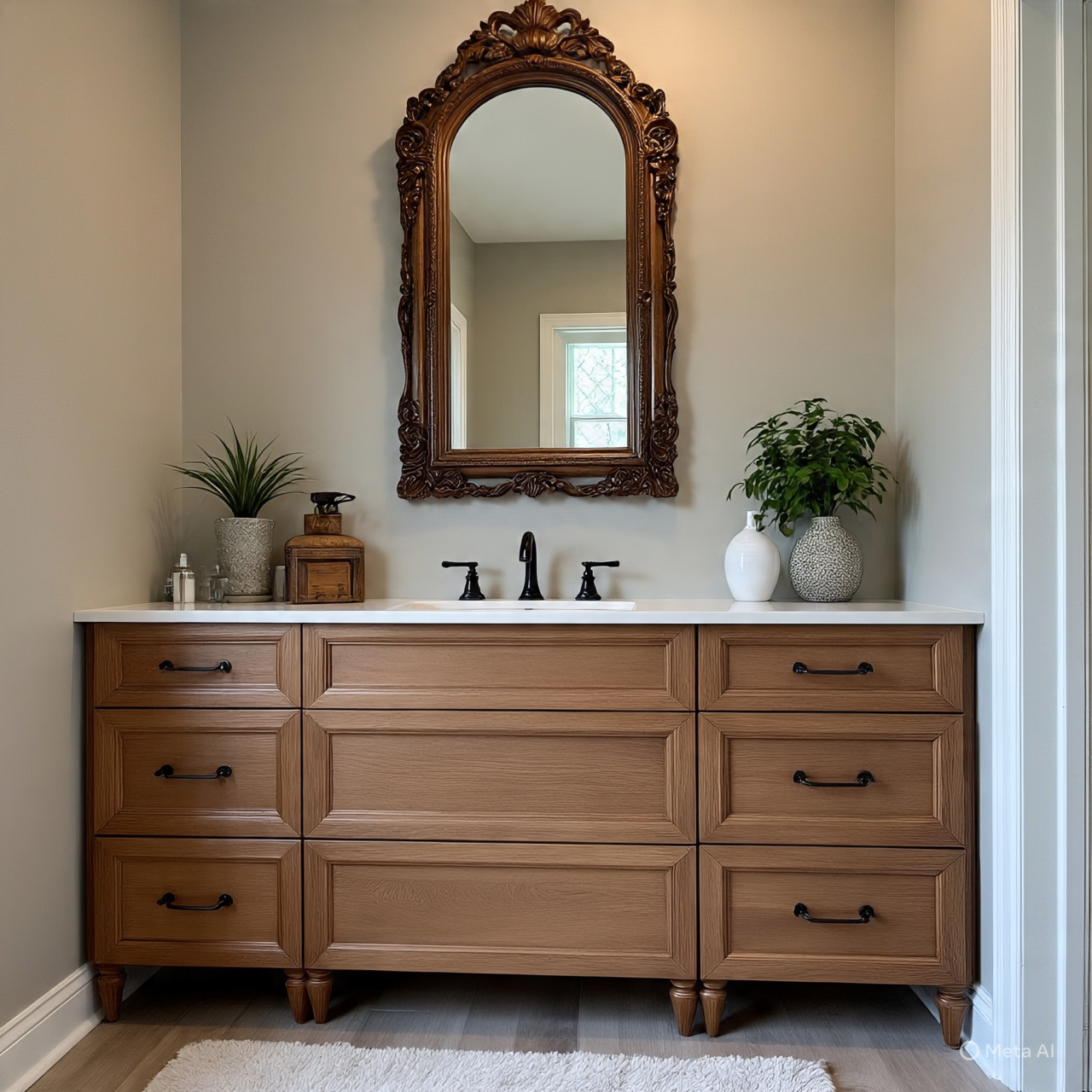 Hardware and finishes bring the design together. Brushed nickel, matte black, or brass handles and faucets can change the entire look of the vanity, tying it to the bathroom’s overall theme.