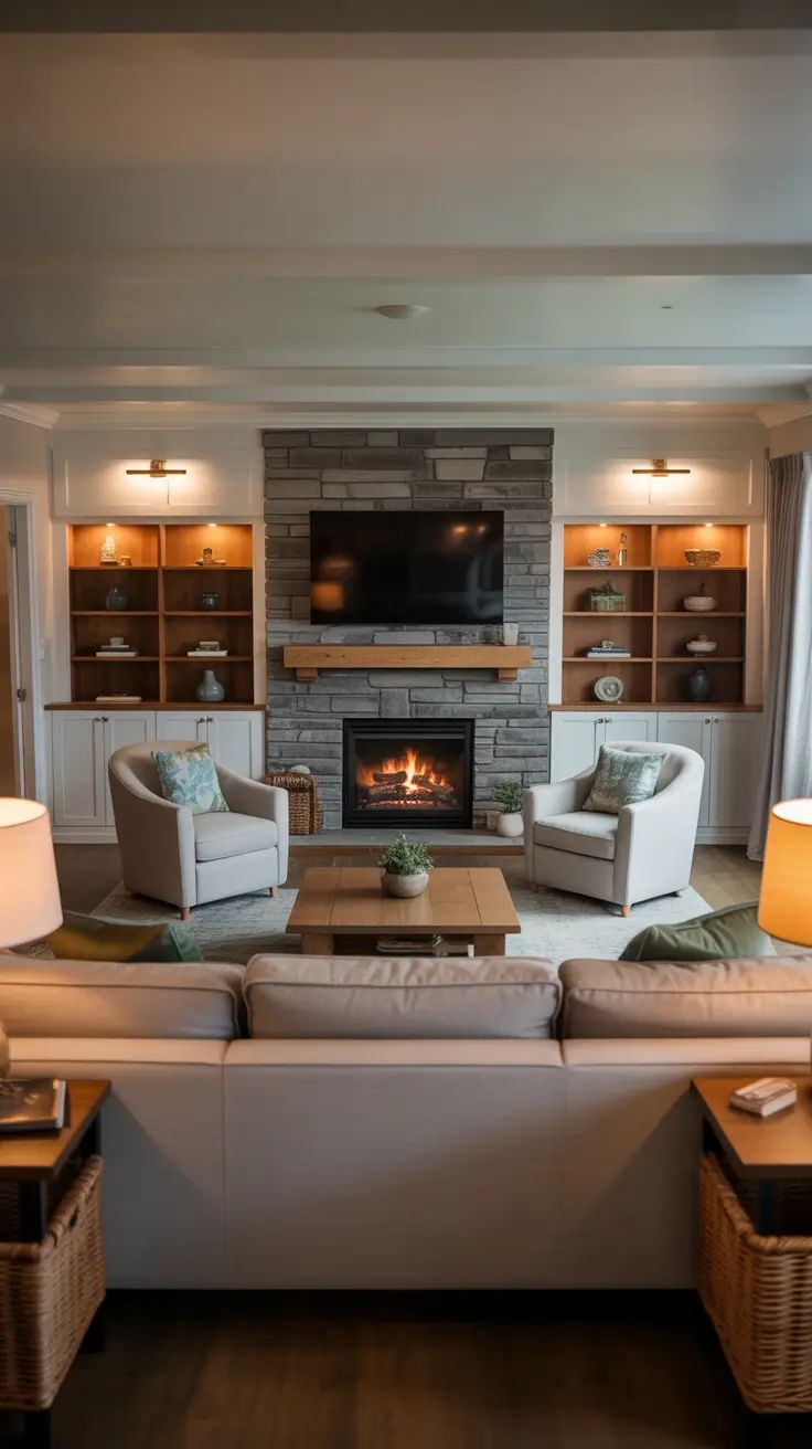 Furniture in 2026 is bigger and more dynamic: oversized sofas, large-scale art, and layered antiques that tell a story. Incorporate intelligent tech like hidden smart lighting or modular pieces that adapt to your needs. For remodeling, focus on mismatched elements—vintage finds with sleek modern accents—to infuse personality and nostalgia. This trend turns your living room into a welcoming hub full of character.