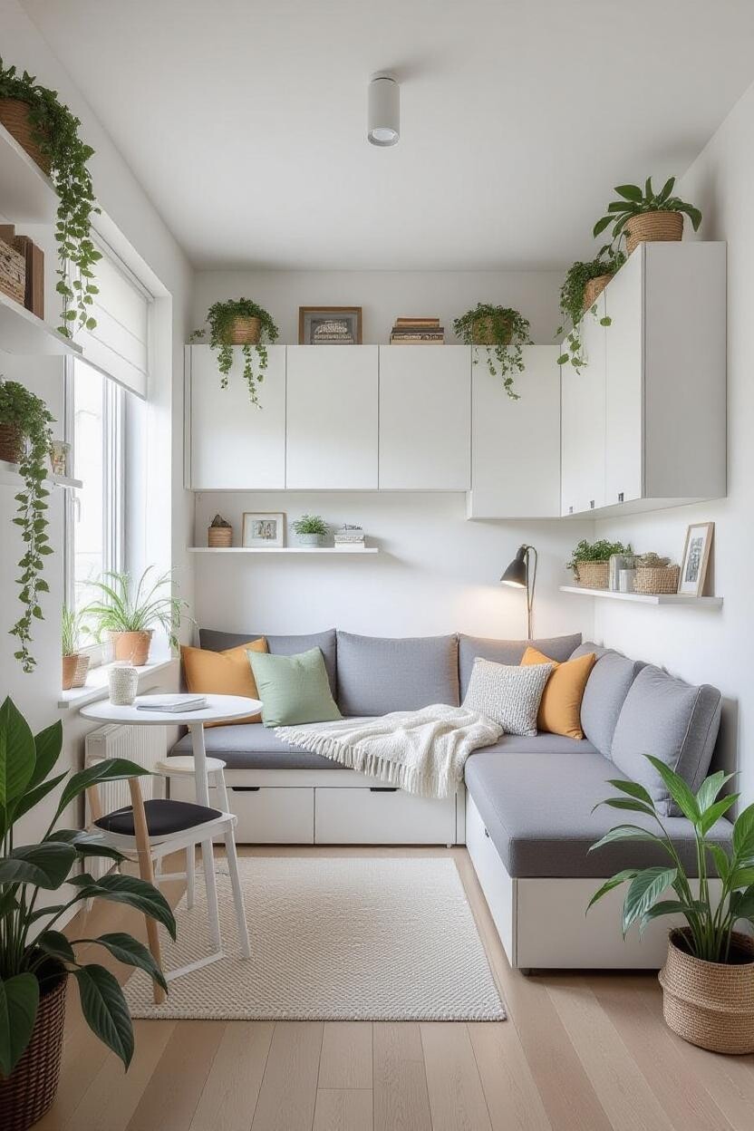 Plants can make a small space feel more inviting and expansive. Vertical gardens, hanging planters, or small indoor herb gardens add greenery without occupying significant floor space.
