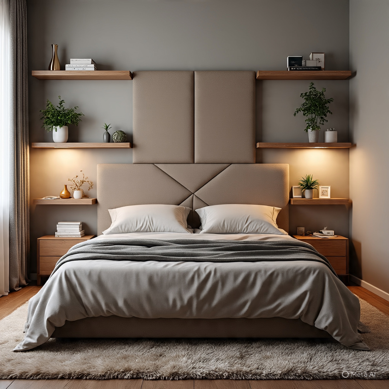 Build a fabric-upholstered, wood, or slat-style headboard for a custom look.