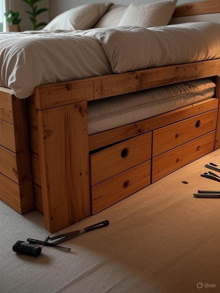 The journey starts with planning. Measure the size of your mattress—twin, queen, king—and sketch out a simple blueprint. The idea is to create a wooden platform slightly larger than the mattress, with either drawers that slide out or a lift-up top that reveals a hidden compartment. Drawers are more convenient for daily use, while a hinged lift-up design gives you a larger, uninterrupted storage space. Either way, the project starts with building a strong frame.