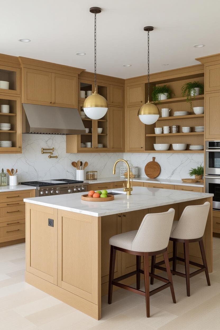 Cabinetry and storage solutions play a major role in both functionality and aesthetics. Opt for high-quality cabinets with soft-close mechanisms and cleverly designed interiors, such as pull-out spice racks, lazy Susans, and deep drawers for pots and pans. Open shelving can be used to display decorative items or frequently used kitchenware, giving the space personality without clutter. Countertops, whether marble, quartz, or butcher block, should complement the cabinets while offering durability and easy maintenance.