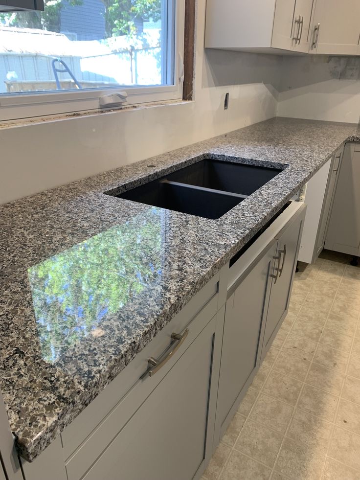 - Solid Granite: A single piece of granite that is cut to fit the countertop area.