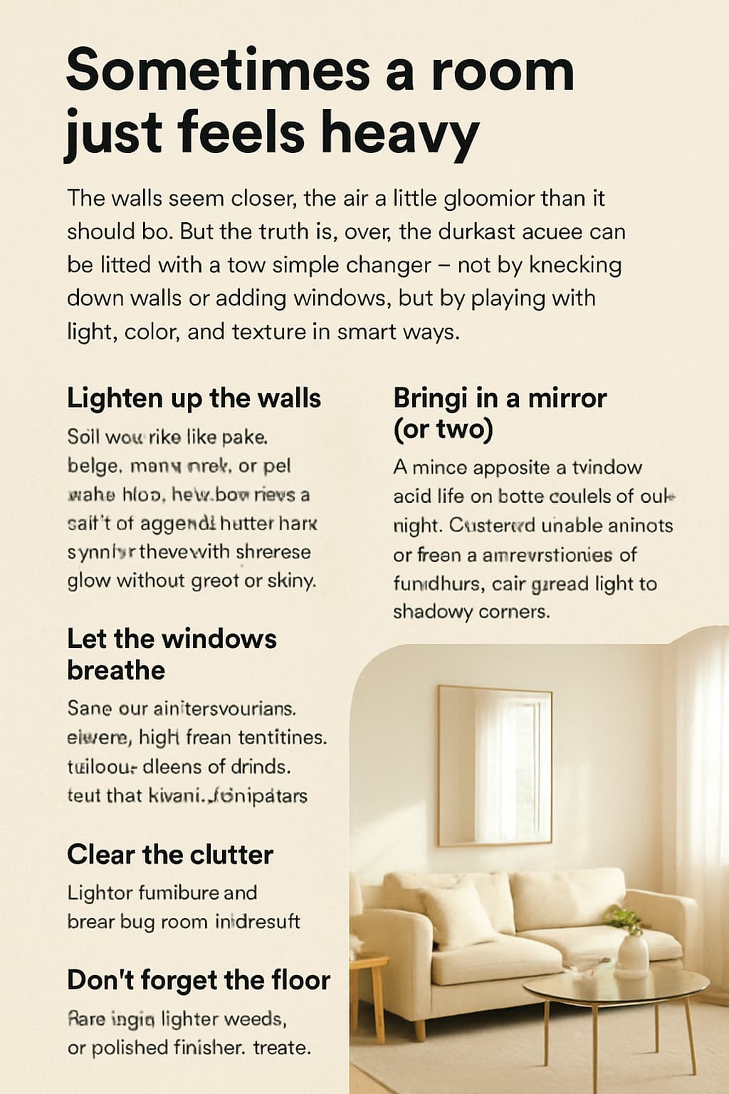 Sometimes a room just feels heavy. The walls seem closer, the air a little gloomier than it should be. But the truth is, even the darkest space can be lifted with a few simple changes—not by knocking down walls or adding windows, but by playing with light, color, and texture in smart ways.