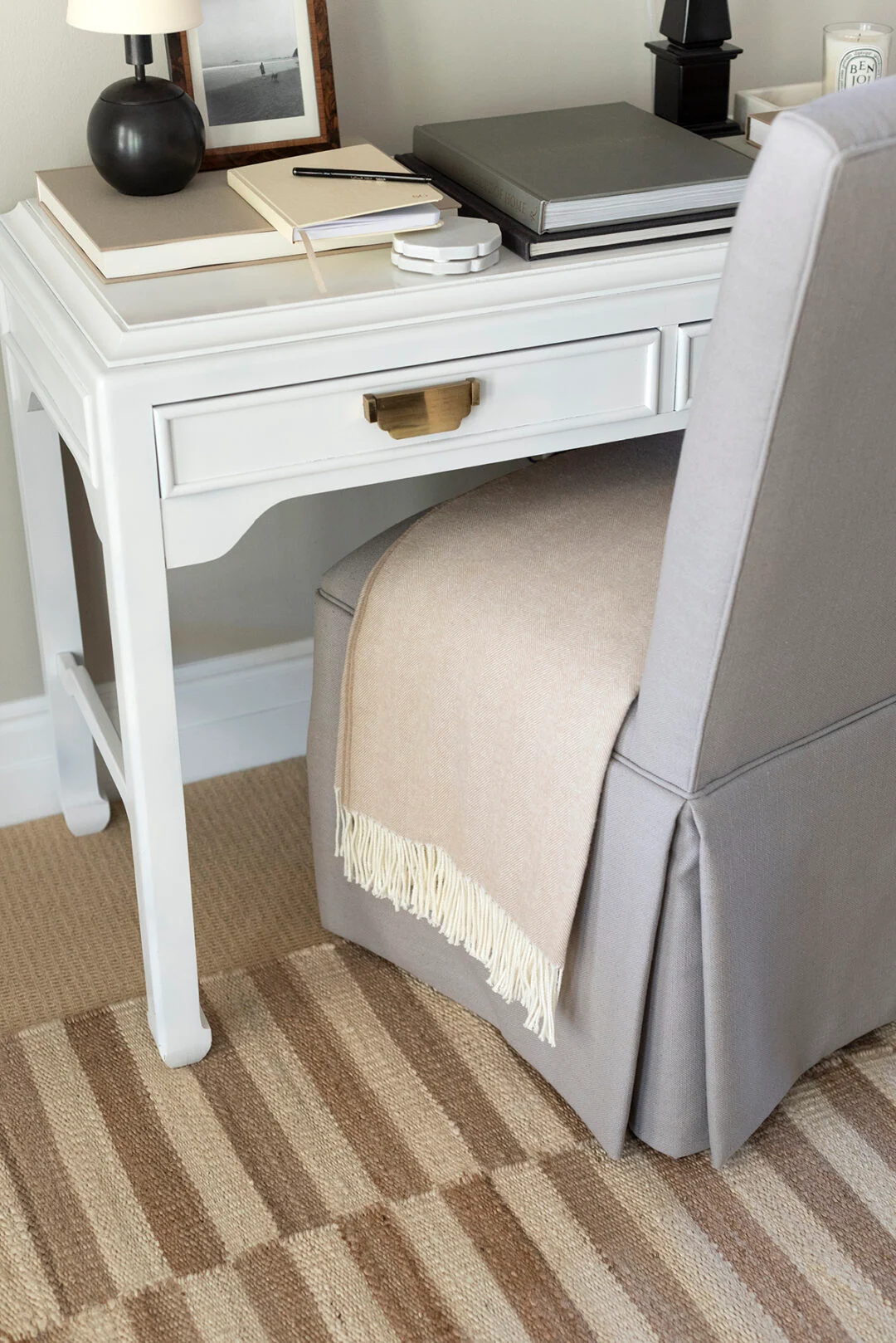 I started by rearranging the furniture and repainting one wall. I didn’t expect how much dust would come off the old wall, and I had to wipe everything down twice before painting.