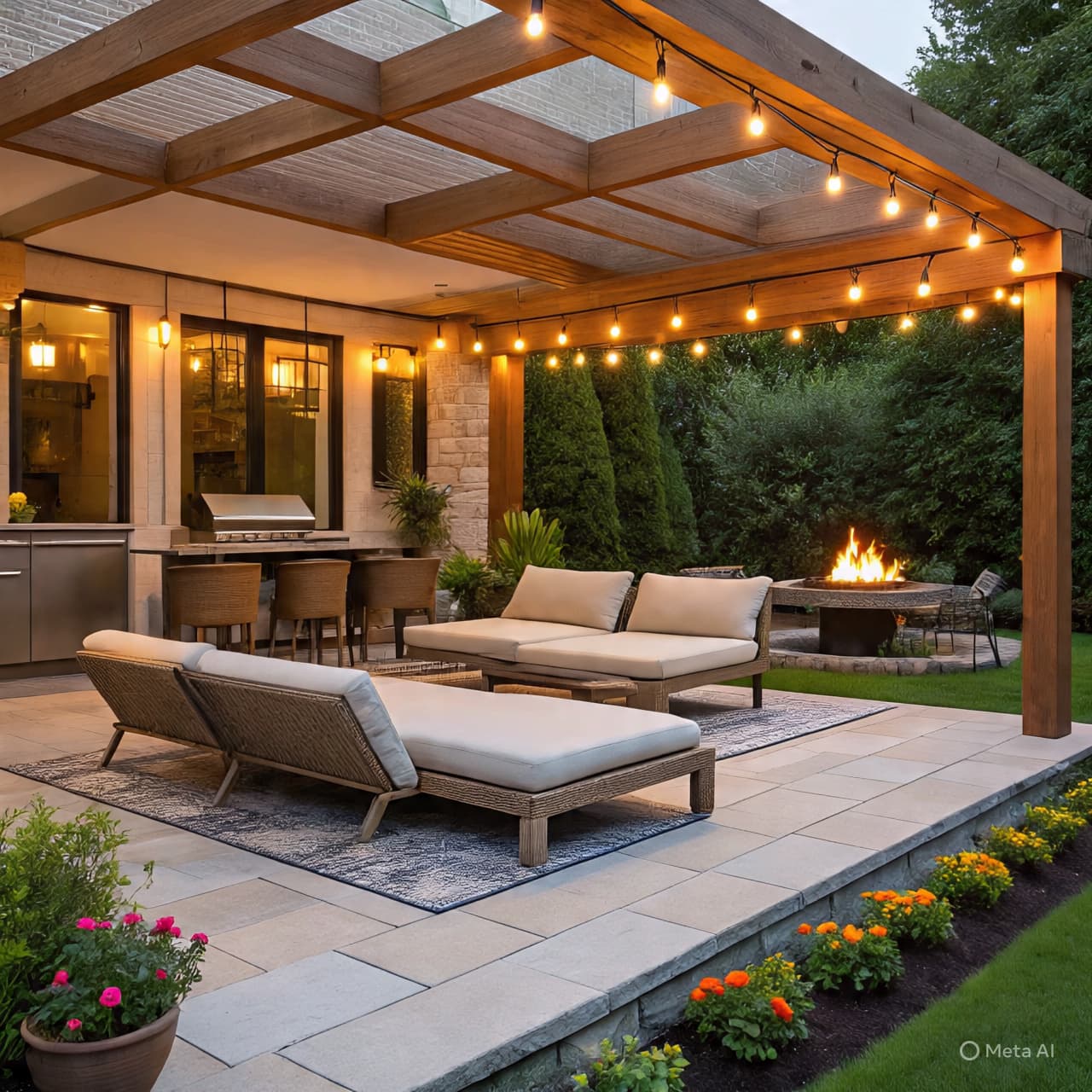 Lighting and ambiance bring outdoor spaces to life after sunset. String lights, lanterns, recessed deck lighting, and solar-powered fixtures create warm, inviting atmospheres. Pathway lights enhance safety, while spotlights highlight landscaping or architectural features. Fire pits, fireplaces, and outdoor heaters extend usability into cooler evenings and seasons.