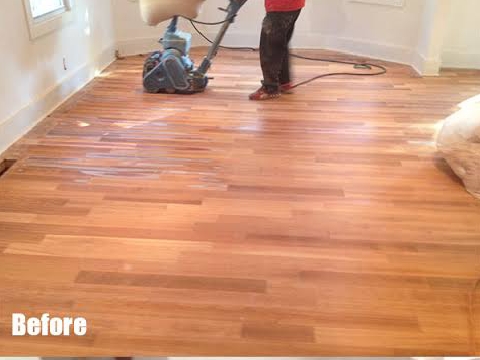 The room’s old hardwood had scratches and dull spots. Replacing it wasn’t an option, so the goal was to make it look fresh without major work.