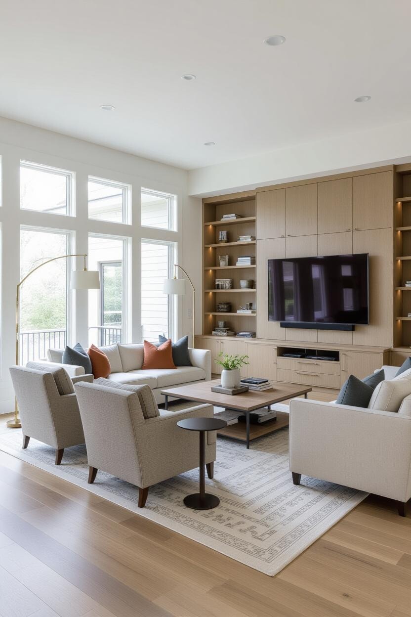 Lighting is a key factor in enhancing ambiance and functionality. Layered lighting, combining overhead fixtures, floor lamps, and accent lighting, allows homeowners to adjust the mood according to time of day or activity. Natural light from windows or skylights brightens the space, while dimmable lighting provides flexibility for evening relaxation or entertainment.