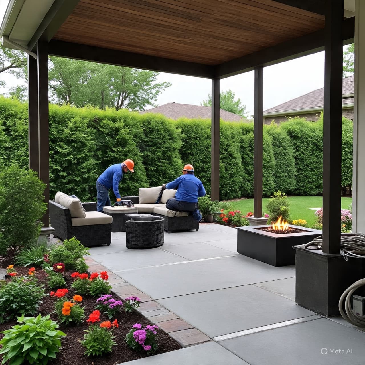 Furniture defines how the patio is used. Comfortable seating, dining sets, or even outdoor daybeds make the space inviting. Weather resistant cushions and fabrics extend the life of furniture while adding colour and comfort.