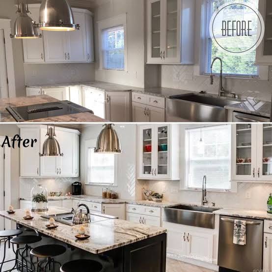 Lighting enhances the renovation. Pendant lights over an island or under-cabinet lighting should always be switched on during staging to show their effect. Bright, inviting light ensures every new detail is noticed.