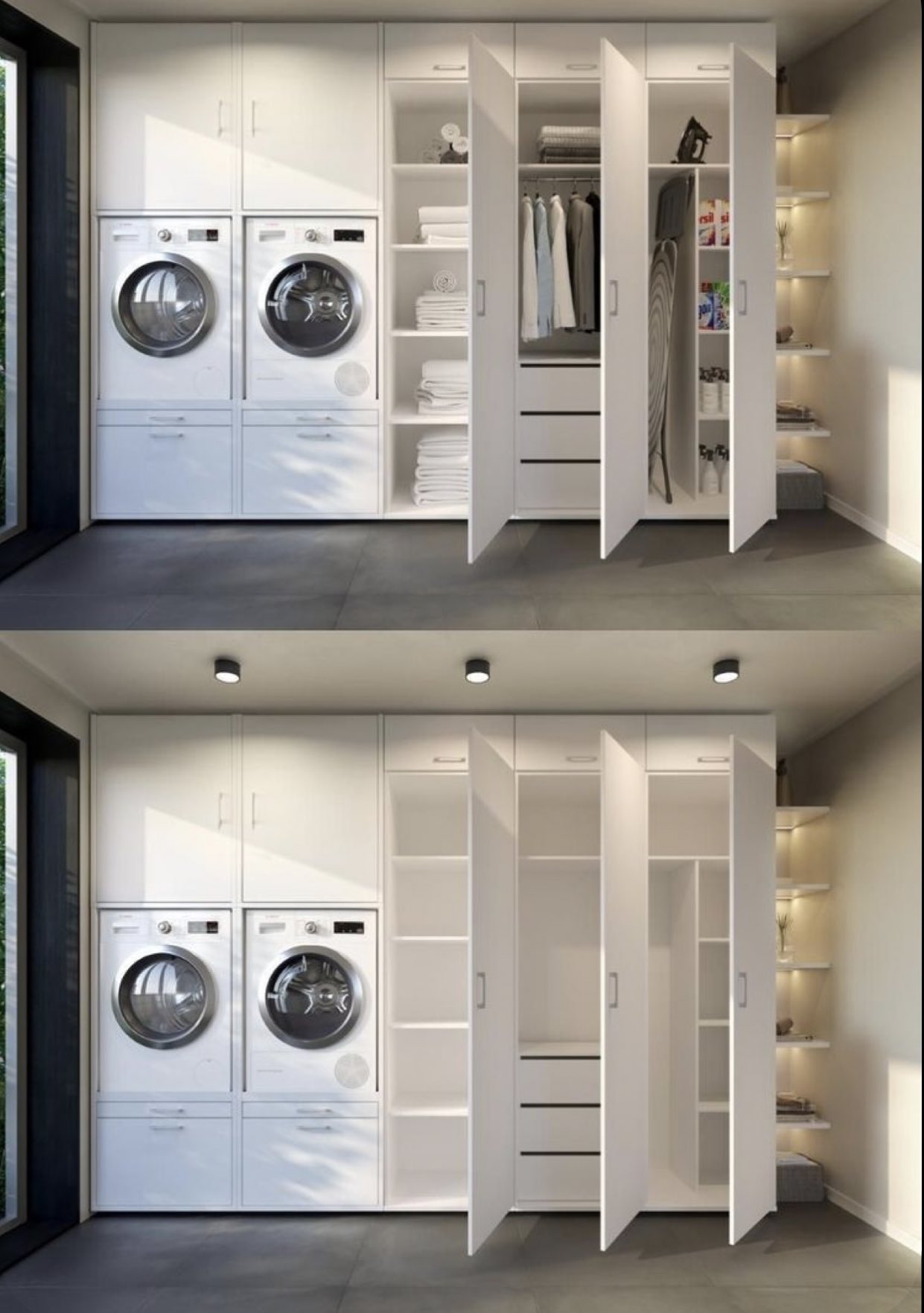 Emphasis should be made on functionality. The staging may involve folding stations, laundry bins and in-built cabinets/shelf that reflect efficiency of the space. In case the room is small, the stackable washers and dryers or pull-out ironing boards will show how the small space can be used in its different forms without losing its functionality.